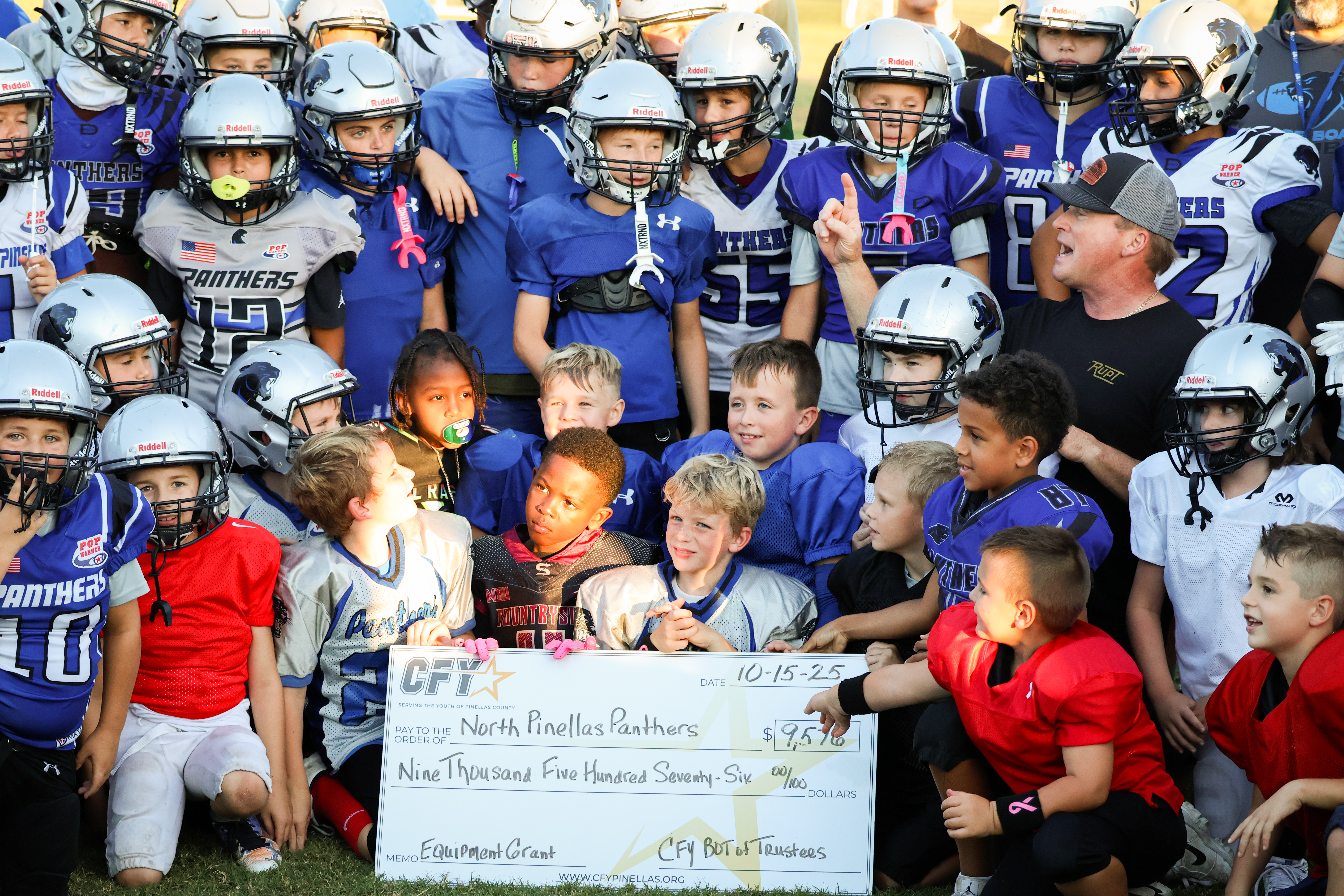 CFY has contributed over $200,000+ in equipment and registration fees to ALL 17 football/cheer organizations across Pinellas County in 2025